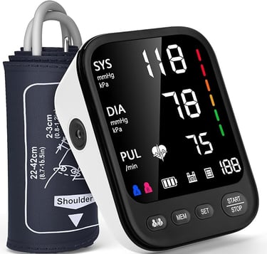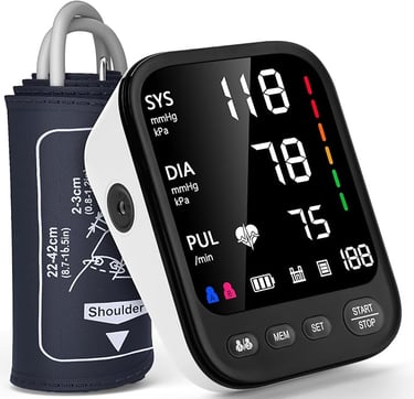 Large Multi-Color Backlit Display: The large, oversized numbers make reading the results from this upper arm blood pressure monitoring device a breeze. Coded (GREEN/YELLOW/RED) display tells if your blood pressure readings are optimal or not.