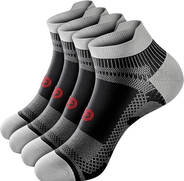 [MORE COMPRESSION FOR EXERCISE] COMPRESSION is proven to improve blood flow, move faster, react quicker and use less energy. Targeted compression zones provide varying levels of support from moderate to extra firm. These ankle compression socks are designed to promote blood circulation and oxygen flow preventing cramping, fatigue, swelling and helps in muscle recovery, plantar fasciitis