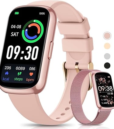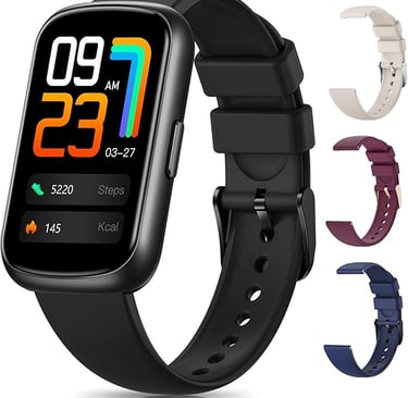 [24/7 Health Monitor for All-round Protection] In addition to 24-hour heart rate monitoring, blood oxygen detection and breathing training mode, as a fitness watch for women, it is also able to infer women's menstrual cycle and provide reminders. You can view real-time data on this health smart watch at any time, or view the recorded continuous data and analysis reports on the app.