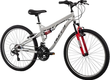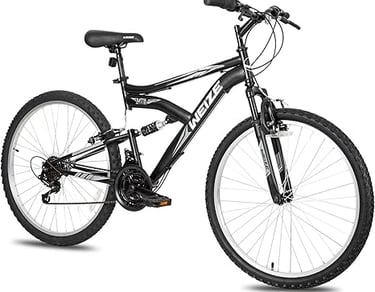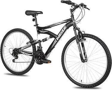 【Frame】: Durable steel dual suspension Mountain Bike frame. Featured with Front suspension fork and rear coil shock to smooth out the bumps along the way.