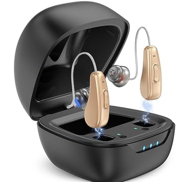 Convenient and Rechargeable : Hearing aids are rechargeable, no need to replace batteries, with the charging box can be charged anytime, anywhere, do not have to worry about hearing aids out of battery